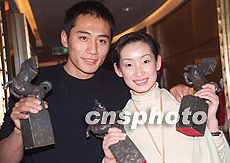 圖:金馬獎(jiǎng)影帝影后榮歸北京 2001年12月13日 18:34 ![]() 剛剛榮獲第三十八屆臺(tái)灣電影金馬獎(jiǎng)影帝、影后的大陸演員劉燁(左)、秦海潞十三日向北京媒體展示獎(jiǎng)杯,他們因在《藍(lán)宇》、《榴蓮飄飄》兩部電影中分別飾演男、女主角而獲此殊榮。 中新社圖 武仲林 攝 |