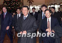 組圖:何厚鏵今日抵達北京述職 2001年12月25日 17:04 ![]() 前來述職的澳門特別行政區(qū)行政長官何厚鏵,二十五日抵達北京并下榻港澳中心。國務(wù)院港澳辦公室副主任陳佐洱在港澳中心大堂迎接。中新社記者 毛建軍 攝 ![]() 前來述職的澳門特別行政區(qū)行政長官何厚鏵,二十五日抵達北京并下榻港澳中心,國務(wù)院港澳辦公室副主任陳佐洱在港澳中心大堂迎接。中新社記者 毛建軍 攝