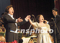 圖:戴玉強(qiáng)與美國女高音在北京新年音樂會演唱 2002年01月01日 19:35 ![]() 著名美國女高音歌唱家克瑞斯迪娜·安德魯斯,用剛剛學(xué)會的中文與中國著名男高音歌唱家戴玉強(qiáng)在2002年北京新年音樂會上演唱的《敖包相會》,博得了全場觀眾的熱烈掌聲。中新社記者 李剛 攝 |
