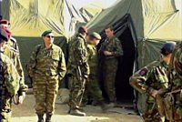 圖:150名國際維和士兵抵達喀布爾 2002年01月03日 16:33 ![]() 大約150名國際維和部隊士兵2日已抵達阿富汗首都喀布爾,其他部隊正源源不斷往這里進發(fā)。在這150人的先遣部隊中,125人屬于英國軍隊,其中有7名女兵;其他25人則分別來自德國、法國、意大利等歐洲國家。國際維和部隊的總部就設在喀布爾市區(qū)美國大使館附近。中新社圖 |