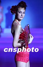 圖:香港時裝節(jié)展示網(wǎng)狀女內(nèi)衣 2002年01月17日 19:47 ![]() 香港時裝節(jié)1月17日舉行女式內(nèi)衣表演專場,歐洲模特在幽藍的燈光下展示一款香港設(shè)計師設(shè)計的網(wǎng)狀粉紅女內(nèi)衣。中新社傳真 任晨鳴 攝 |