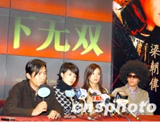 圖:四明星聯(lián)手在香港推廣《天下無雙》 2002年02月03日 19:49 ![]() 香港新“影帝”梁朝偉、“歌后”王菲、“小燕子”趙薇、臺灣影星張震,2月3日聯(lián)手在香港推介他們四人合作拍攝的電影《天下無雙》。中新社傳真 任晨鳴 攝