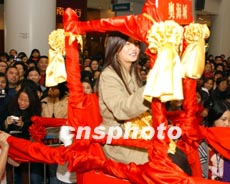 圖文:趙薇香港坐花轎宣傳新片 笑言很安全 2002年02月04日 16:00 ![]() 中新網(wǎng)香港2月4日消息:趙薇為新戲《天下無雙》做宣傳昨日赴港,安排她與王菲乘坐花轎到場,而兩男主角梁朝偉及張震,一個踢轎門、一個接花球。雖說趙薇近日很少公開露面,但她的影迷仍熱情未減。 據(jù)香港媒體報道,這次是她自“遇襲”之后首度在香港公開露面,加上又人多,問到她是否會感壓力及害怕?趙薇則輕松的答:“不會,謝謝王菲、梁朝偉一直支持我,壓力全在他們身上罷了”,而且覺得身在香港也比較很安全。 相關(guān)報道:圖:梁朝偉王菲趙薇張震聯(lián)手在香港推介《天下無雙》 相關(guān)報道:《天下無雙》首映藏玄機 趙薇 相關(guān)報道:圖文:《天下無雙》拍竣 王菲趙薇粉碎不和傳言 相關(guān)報道:圖文:歷經(jīng)波瀾“小燕子”趙薇片場無聲對記者 相關(guān)報道:趙薇有沒有被潑糞?香港某雜志刊登清晰照片 相關(guān)報道:趙薇公開致歉 稱軍旗裝事件是“無心之失”