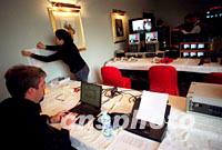 圖:采訪布什訪華的美國記者在京安營扎寨 2002年02月20日 14:29 ![]() 二十日,專程來京采訪美國布什總統(tǒng)訪華的美國電視聯(lián)合記者采訪團(US TV POOL),已在北京香格里拉飯店安營扎寨。中新社記者 史利 攝