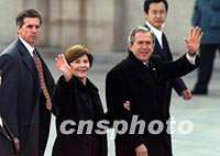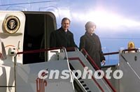 組圖:美國(guó)總統(tǒng)布什抵達(dá)北京 2002年02月21日 11:10 ![]() 美國(guó)總統(tǒng)布什乘坐的“空軍一號(hào)”二十一日上午降落在北京首都國(guó)際機(jī)場(chǎng)。中新社記者 毛建軍 攝 ![]() 美國(guó)總統(tǒng)布什與夫人二十一日上午乘專(zhuān)機(jī)抵達(dá)北京首都國(guó)際機(jī)場(chǎng),開(kāi)始為期兩天的工作訪問(wèn)。中新社圖 毛建軍 攝