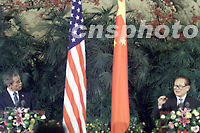 中新社北京二月二十一日十三時十五分電 本社記者譚宏偉現(xiàn)場報道:今天下午,中國國家主席江澤民和美國總統(tǒng)布什在結(jié)束大約一小時四十分鐘的會談后來到人民大會堂中央大廳共同會見記者。 江澤民說,在今天的會談中,我與布什總統(tǒng)回顧了中美關(guān)系三十年的歷程,深入討論了雙邊關(guān)系和當(dāng)前國際形勢,達成了許多重要共識,取得了多方面的積極成果。 兩國元首將在預(yù)計三十分鐘的時間里,向早已等候在這里的三百多名中外記者介紹此次峰會的主要內(nèi)容并回答有關(guān)提問。記者會現(xiàn)正在進行當(dāng)中。