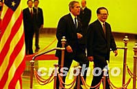 圖:江主席歡迎布什 2002年02月21日 13:03 ![]() 中國國家主席江澤民二十一日在北京人民大會(huì)堂舉行儀式,歡迎美國總統(tǒng)布什訪問。中新社記者 賈國榮 攝