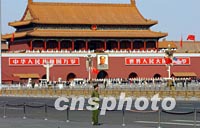 ![]() 美國(guó)總統(tǒng)布什二月二十一日來(lái)華訪問(wèn),兩國(guó)國(guó)旗同時(shí)在天安門前飄揚(yáng)。中新社圖 杜洋 攝