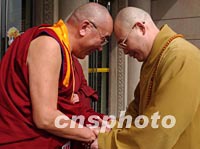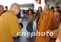 組圖:法門寺佛指舍利臺灣迎請團(tuán)抵達(dá)西安 2002年02月21日 19:49 ![]() 由臺灣佛教法師、信眾組成的法門寺佛指舍利赴臺灣地區(qū)瞻禮(供奉)恭迎團(tuán),二十一日下午乘機(jī)抵達(dá)西安咸陽國際機(jī)場。圖為恭迎團(tuán)在機(jī)場受到熱烈歡迎。中新社記者 錢興強(qiáng) 攝 ![]() 法門寺將舉行佛指舍利赴臺灣地區(qū)瞻禮(供奉)法會,來自大陸、港臺以及各地的佛教信眾匯聚西安。圖為中國著名法師圣輝(右)和中國藏學(xué)院副院長那倉活佛(左)親切見面。中新社記者 錢興強(qiáng) 攝