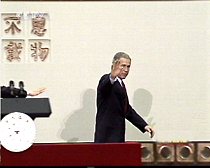 圖:布什總統(tǒng)結(jié)束回答學(xué)生提問(wèn) 2002年02月22日 11:40 ![]()