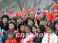 組圖:布什夫婦游覽長(zhǎng)城 2002年02月22日 16:02 ![]() 美國(guó)總統(tǒng)布什與夫人勞拉二十二日登上北京八達(dá)嶺長(zhǎng)城參觀游覽時(shí),與歡迎的少年兒童合影。中新社記者 毛建軍 攝 ![]() 美國(guó)總統(tǒng)布什與夫人勞拉二十二日登上北京八達(dá)嶺長(zhǎng)城。中新社記者 毛建軍 攝