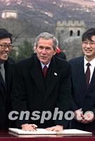 圖:布什總統(tǒng)登八達嶺長城題寫“Best wishes” 2002年02月22日 16:09 ![]() 美國總統(tǒng)布什二十二日登上北京八達嶺長城后,題寫美好祝愿:“Peace to our people”、“Best wishes”。中新社記者 毛建軍 攝