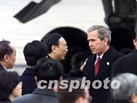 圖:駐美大使楊潔篪為布什送行 2002年02月22日 18:30 ![]() 美國總統(tǒng)布什二十二日下午結(jié)束對(duì)中國為期兩天的工作訪問后,乘專機(jī)離開北京。中國駐美大使楊潔篪等前往機(jī)場(chǎng)送行。中新社記者 滿會(huì)喬 攝