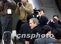 圖:中外記者聚焦布什離京 2002年02月22日 18:31 ![]() 美國(guó)總統(tǒng)布什二十二日結(jié)束對(duì)中國(guó)的工作訪問(wèn)離開(kāi)北京,中外記者云集北京首都機(jī)場(chǎng)拍攝布什離京畫(huà)面。中新社記者 滿會(huì)喬 攝