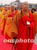 圖:星云法師率臺(tái)灣佛家弟子出席大法會(huì) 2002年02月22日 19:54 ![]() 法門寺佛指舍利赴臺(tái)灣地區(qū)瞻禮(供奉)法會(huì)儀式二十二日在西安法門寺舉行,來自臺(tái)灣的恭迎團(tuán),由大陸佛教人士組成的護(hù)送團(tuán)以及護(hù)法團(tuán)等各界有關(guān)人士千余人匯集法門寺。圖為星云法師率臺(tái)灣佛家弟子出席大法會(huì)。中新社記者 錢興強(qiáng) 攝