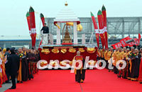 組圖:佛指舍利赴臺(tái)灣地區(qū)瞻禮恭送法會(huì) 2002年02月23日 17:21 ![]() 法門寺佛指舍利赴臺(tái)灣地區(qū)瞻禮(供奉)恭送法會(huì), 二十三日在西安咸陽(yáng)國(guó)際機(jī)場(chǎng)舉行。中新社記者 錢興強(qiáng) 攝 ![]() 二十三日西安咸陽(yáng)機(jī)場(chǎng)法旗飄飄、云香繚繞,兩岸眾僧恭送法門寺佛指舍利赴臺(tái)灣地區(qū)瞻禮(供奉)。 中新社記者 錢興強(qiáng) 攝