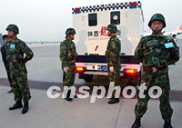 組圖:咸陽(yáng)機(jī)場(chǎng)戒備森嚴(yán)護(hù)衛(wèi)佛指舍利 2002年02月23日 17:28 ![]() 法門寺佛指舍利赴臺(tái)灣地區(qū)瞻禮(供奉)恭送法會(huì)二十三日在西安咸陽(yáng)機(jī)場(chǎng)舉行圖為當(dāng)?shù)卣沙鼍臁⑽渚_保佛指舍利安全。中新社圖 錢興強(qiáng) 攝 ![]() 法門寺佛指舍利二十三日在武警嚴(yán)密護(hù)送下,運(yùn)抵西安咸陽(yáng)機(jī)場(chǎng)。中新社圖 錢興強(qiáng) 攝