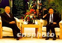 ![]() 中國(guó)總理朱镕基七日在北京人民大會(huì)堂香港廳,會(huì)見(jiàn)剛剛連任香港特別行政區(qū)第二任行政長(zhǎng)官的董建華先生。中新社記者 賈國(guó)榮 攝