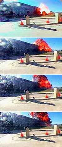 組圖:美國(guó)媒體公布飛機(jī)撞擊五角大樓瞬間照片 2002年03月08日 09:43 ![]() 五角大樓北面的監(jiān)視鏡頭拍攝的撞擊場(chǎng)面 中新網(wǎng)北京3月8日消息:美國(guó)傳媒公開一組去年“九·一一”恐怖襲擊事件中,國(guó)防部所在的五角大樓遭被劫持客機(jī)撞擊瞬間的照片。 據(jù)美聯(lián)社報(bào)道,這組照片共有五幅,是由懸掛在五角大樓北面的一個(gè)監(jiān)視鏡頭拍攝的。從照片中看,五角大樓北側(cè)遭飛機(jī)撞擊時(shí),從地面騰起一團(tuán)火焰,并冒出滾滾濃煙。