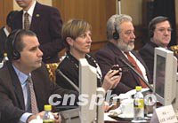 圖:世博會考察團在北京聽取上海申辦陳述 2002年03月11日 16:34 ![]() 十一日,在北京釣魚太國賓館參加“申辦2010年上海世博會陳述會談”的加拿大代表、考察團長長、國際展覽局副主席兼執(zhí)委會主席卡門.塞文女士(左二)、古巴代表胡安—馬里奧·拉米蓋依羅先生(左一)、德國代表赫爾穆德先生(左三)等,一同聽取中國代表的陳述。中新社記者 鄒憲 攝