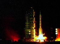 圖:“神舟三號(hào)”實(shí)驗(yàn)飛船順利發(fā)射升空 2002年03月26日 11:02 ![]() 二十五日晚十點(diǎn)十五分,中國(guó)自主研制的“神舟三號(hào)”實(shí)驗(yàn)飛船在酒泉衛(wèi)星發(fā)射中心順利升空。
