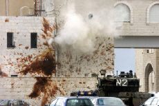 組圖:以軍部隊突擊圍困阿拉法特總部過程圖解 2002年03月30日 01:06 ![]() 以軍破壞阿拉法特總部外墻 ![]() 以軍坦克猛烈炮轟阿拉法特總部大樓 ![]() 以軍士兵從外墻缺口闖入總部院內(nèi) ![]() 以軍士兵闖入總部重重包圍阿拉法特 ![]() 阿拉法特被困總部內(nèi)危在旦夕(法新社)