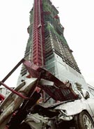 臺(tái)北"地標(biāo)"建筑墜物停工 傾斜民宅將連夜支撐 2002年03月31日 20:08 ![]() 臺(tái)北“金融大樓”吊臂墜落砸毀轎車(chē)并造成傷亡。 中新網(wǎng)香港3月31日消息:臺(tái)北訊,臺(tái)北“國(guó)際金融大樓”工地在今天的大地震中吊臂墜落,造成至少4人死亡多人受傷的慘劇。臺(tái)北當(dāng)局已經(jīng)要求業(yè)者停工。 預(yù)定興建101層樓的臺(tái)北“國(guó)際金融大樓”,曾被預(yù)計(jì)為臺(tái)北未來(lái)的一座“地標(biāo)”性的建筑,目前已經(jīng)興建到一半的高度。但在地震發(fā)生時(shí),架設(shè)在頂部的兩具吊臂與支架發(fā)生松脫而墮落,其中一具甚至掉落在馬路上。 依照當(dāng)局規(guī)定,任何工地都必須依照規(guī)定設(shè)置防震性的防護(hù)措施。但“金融大樓”頂樓的吊臂在設(shè)置時(shí)是否合乎安全規(guī)定?吊臂支撐是否穩(wěn)固?將成為當(dāng)局調(diào)查的重點(diǎn)。 臺(tái)北市的“建筑管理處”今天已要求調(diào)查業(yè)者在施工時(shí)是否做好安全措施,并厘清肇事責(zé)任歸屬。 此外,臺(tái)北市承德路一座民房因?yàn)閺?qiáng)震而部分倒塌,臺(tái)北市“副市長(zhǎng)”歐晉德在7名受困民眾全部被送往醫(yī)院后表示,將連夜完成支撐建筑體的工作,避免這棟傾斜的樓房進(jìn)一步倒塌。
