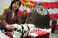 組圖:“神州乘客”今日出艙 2002年04月04日 17:07 ![]() “神州三號(hào)”飛船返回艙搭載物品開艙交接儀式,4日在中國(guó)空間技術(shù)研究院北京空間技術(shù)研制試驗(yàn)中心舉行,解放軍總裝備部,中科院,中國(guó)航天科技集團(tuán)公司等各界相關(guān)人士出席了交接儀式。中新社記者 王瑤 攝