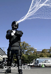 圖文:日本用"網(wǎng)槍"把足球流氓一"網(wǎng)"打盡 2002年04月05日 14:21 ![]() 大分縣警察總部警員身穿防護(hù)服,發(fā)射“網(wǎng)槍”(共同社圖) 本世界杯專稿版權(quán)歸中新網(wǎng)與TOM網(wǎng)站共同擁有。如需刊用,務(wù)經(jīng)雙方正式書面授權(quán)。 中新網(wǎng)北京4月5日消息:世界杯比賽主辦地之一的日本大分縣警察總部世界杯警備對策室4日公開了可以制服因興奮而到處胡鬧的足球流氓的“網(wǎng)槍”。 據(jù)共同社報(bào)道,在大約5米處發(fā)射“網(wǎng)槍”后,強(qiáng)化尼龍制成的網(wǎng)就向四方擴(kuò)展,展開面積大約5米,可以捉住2、3人。據(jù)說“就象落網(wǎng)的魚,自己絕對掙脫不出來!薄熬W(wǎng)槍”是國產(chǎn)的,每發(fā)射一次花費(fèi)2萬日元。 “網(wǎng)槍”計(jì)劃被設(shè)置在舉行比賽的大分綜合體育場(大分市)以及附近車站的周圍。