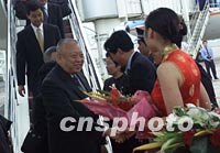 ![]() 香港特別行政區(qū)行政長官董建華與夫人十一日抵達海南,出席十二日開幕的亞洲論壇首屆年會。中新社記者 滿會喬 攝