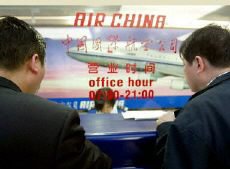 圖:顧客在中國(guó)國(guó)際航空公司售票處購(gòu)票 2002年04月15日 19:30 ![]() 顧客在中國(guó)國(guó)際航空公司售票處購(gòu)票。法新社圖