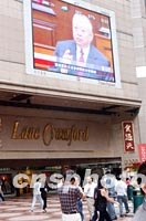 圖:香港時(shí)代廣場播發(fā)高官問責(zé)制情況 2002年04月18日 19:31 ![]() 香港特區(qū)行政長官董建華四月十七日下午在立法會解釋有關(guān)高官問責(zé)制的情況。圖為大屏幕播出的有關(guān)新聞吸引了市民。中新社記者 任海霞 攝