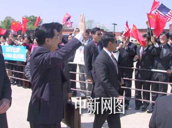 圖文:胡錦濤抵達(dá)華盛頓 美國助理國務(wù)卿等迎接 2002年05月01日 09:38 ![]() 當(dāng)?shù)貢r間4月30日上午11時,胡錦濤副主席乘專機抵達(dá)美國首都華盛頓,繼續(xù)其對美國的正式訪問。圖為胡錦濤副主席攜夫人步下舷梯。中新社 徐德金攝 ![]() 胡錦濤面含笑容迎向歡迎的人群,頻頻揮手致意。中新社 徐德金攝 ![]() 胡錦濤在機場受到美方官員、中國駐美使館工作人員和華人華僑、留學(xué)生代表的熱烈歡迎。中新社 徐德金攝 中新網(wǎng)華盛頓四月三十日電(記者徐德金)中國國家副主席胡錦濤和夫人今天上午十一時許乘專機抵達(dá)美國首都華盛頓。在安德魯空軍機場,胡副主席受到美方官員、中國駐美使館工作人員和華人華僑、留學(xué)生代表的熱烈歡迎。 到機場迎接胡錦濤副主席的美方官員有助理國務(wù)卿凱利、安德魯空軍基地司令等。美國駐華大使雷德陪同胡副主席一行從紐約同機抵達(dá)。 陽光朗照,春風(fēng)和煦,胡錦濤副主席和夫人步下舷梯、踏上紅地毯。中國駐美使館工作人員向胡副主席和夫人敬獻(xiàn)了鮮花。在熱烈的歡迎聲中,胡副主席面含笑容迎向歡迎的人群,頻頻揮手致意。 胡錦濤副主席是應(yīng)美國副總統(tǒng)切尼的邀請,于四月二十七日抵達(dá)夏威夷開始對美國進行訪問的。 據(jù)悉,在華盛頓訪問期間,胡錦濤副主席將與布什總統(tǒng)、切尼副總統(tǒng)、鮑威爾國務(wù)卿以及國會議員等進行會見、會談;還將出席美中關(guān)系全國委員會等八個團體舉辦的晚餐演講;會見華人華僑、留學(xué)生和中資機構(gòu)的代表。