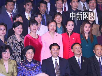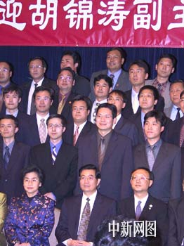 組圖:胡錦濤接見駐美使館人員和旅美學人代表 2002年05月01日 12:57 ![]() 美國當?shù)貢r間四月三十日晚,正在華盛頓訪問的胡錦濤副主席在他下榻的飯店接見華人華僑、留學生代表、中國駐美使館工作人員和中資機構的代表。圖為胡副主席與華盛頓地區(qū)的旅美學人合影。中新社 徐德金/攝 ![]() 圖為胡副主席中國駐美使館工作人員合影。中新社 徐德金/攝