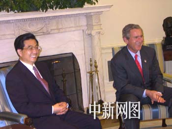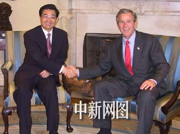 多圖:胡錦濤副主席與美國(guó)總統(tǒng)布什舉行會(huì)晤 2002年05月02日 08:48 ![]() 美國(guó)當(dāng)?shù)貢r(shí)間五月一日下午,美國(guó)總統(tǒng)布什在白宮會(huì)晤中國(guó)國(guó)家副主席胡錦濤。中新社 徐德金/攝 ![]() 美國(guó)當(dāng)?shù)貢r(shí)間五月一日下午,中國(guó)國(guó)家副主席胡錦濤在白宮與美國(guó)總統(tǒng)布什舉行會(huì)晤。圖為胡錦濤、布什微笑面對(duì)攝影記者短暫拍照。中新社 徐德金/攝 ![]() 美國(guó)當(dāng)?shù)貢r(shí)間五月一日上午,中國(guó)國(guó)家副主席胡錦濤與美國(guó)副總統(tǒng)切尼舉行會(huì)談。圖為胡副主席抵達(dá)白宮時(shí)向守候的記者揮手致意。中新社 徐德金/攝 中新網(wǎng)華盛頓五月一日電(記者徐德金)美國(guó)當(dāng)?shù)貢r(shí)間五月一日下午,中國(guó)國(guó)家副主席胡錦濤與美國(guó)總統(tǒng)布什舉行會(huì)晤。 會(huì)晤在白宮橢圓型辦公室舉行。在開放給媒體攝影記者短暫拍照時(shí),布什、胡錦濤滿面微笑、頻頻握手,布什還風(fēng)趣地對(duì)記者說,“再拍一張”。 五月一日上午,胡錦濤與切尼副總統(tǒng)在白宮舉行了會(huì)談。胡副主席是應(yīng)切尼副總統(tǒng)的邀請(qǐng)?jiān)L問美國(guó)的。 下午,胡錦濤還會(huì)晤了美國(guó)總統(tǒng)國(guó)家安全顧問賴斯。 今天,大批媒體記者守候在白宮,采訪胡錦濤副主席與美國(guó)領(lǐng)導(dǎo)人的會(huì)晤、會(huì)談。 胡錦濤副主席今天在五角大樓還會(huì)晤了美國(guó)國(guó)防部長(zhǎng)拉姆斯菲爾德。