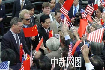 組圖:胡錦濤抵達(dá)舊金山 受華人華僑歡迎 2002年05月03日 09:48 ![]() 中國(guó)國(guó)家副主席胡錦濤一行五月二日中午抵達(dá)美國(guó)舊金山市。舊金山市黑人市長(zhǎng)布朗(左)到機(jī)場(chǎng)迎接胡錦濤和夫人來(lái)訪。中新社 陳建/攝 ![]() 二百多名當(dāng)?shù)厝A僑華人手舉中美兩國(guó)國(guó)旗,在機(jī)場(chǎng)熱情迎接胡錦濤的到來(lái)。胡錦濤與夫人劉永清在舊金山市市長(zhǎng)布朗(左)的陪同下,向歡迎人群揮手致意。中新社 陳建/攝 ![]() 胡錦濤走下專機(jī)舷梯后,并沒(méi)在美國(guó)保安的引導(dǎo)下直接上車,而是向相反方向,走近歡迎人群,高興地與僑胞們握手。中新社 陳建/攝 ![]() 中國(guó)國(guó)家副主席胡錦濤五月二日中午抵達(dá)美國(guó)舊金山市。圖為胡錦濤副主席向歡迎人群揮手致意。中新社 陳建/攝