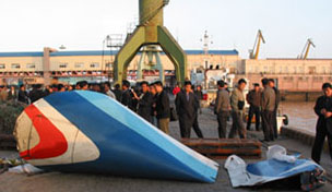 圖文:失事飛機(jī)尾部打撈上岸 尚未發(fā)現(xiàn)幸存者 2002年05月08日 10:20 ![]() 失事飛機(jī)尾部 新華網(wǎng)/圖 中新網(wǎng)北京5月8日消息:5月7日21時許,中國民航北方航空公司的一架麥道82飛機(jī)在大連海域失事。目前失事飛機(jī)尾部已經(jīng)打撈上岸,搜救船只一直在大連海域搜尋,但尚未發(fā)現(xiàn)幸存者。 空難事故引起了中央領(lǐng)導(dǎo)的高度關(guān)注,江澤民、朱镕基、胡錦濤、李嵐清等中央領(lǐng)導(dǎo)同志立即指示國家經(jīng)貿(mào)委、交通部、民航總局全力組織搶救,并指示軍隊支持救援工作。 該飛機(jī)共有112人,其中103名為乘客,另有9名機(jī)組人員。經(jīng)過查證,有8名外籍乘客,其他均為中國人。事故現(xiàn)場已打撈上60多具遇難者尸體。許多尸體表面呈黑色,且衣服已脫落。估計是飛機(jī)艙內(nèi)起火導(dǎo)致身上的衣服被燒焦,落入海中后又被海水沖走所致。 據(jù)有關(guān)人士分析,飛機(jī)原因不明的失事和惡劣的海上環(huán)境,使得乘客生存的機(jī)會非常渺茫。