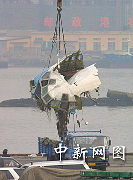 圖:“五·七”空難失事飛機機頭打撈出水 2002年05月10日 18:43 ![]() “五·七”空難失事飛機機頭及部分機體今日打撈出水,由于飛機殘體散落范圍較廣,目前各項掃海打撈工作仍在進行中。中新社記者 王麗南 攝