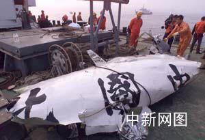 圖:又打撈起較大殘骸 “中國(guó)北”字樣清晰可見(jiàn) 2002年05月11日 21:54 ![]() “五-七”空難現(xiàn)場(chǎng)打撈部門今天又打撈出一塊較大的失事飛機(jī)殘骸,殘骸上“中國(guó)北”三個(gè)字清晰可見(jiàn)。(中新社記者王麗南攝)