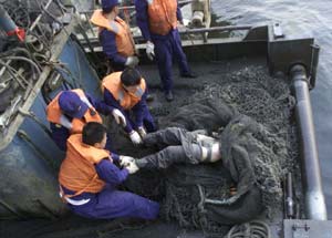 圖文:5·7空難第75具遇難者遺體被打撈出水 2002年05月11日 22:06 ![]() 中新社記者:王麗南 攝 中新網(wǎng)大連5月11日消息:北海艦隊某部救撈船官兵5月11日傍晚時分又打撈出一具男性遇難者遺體,至此,“五·七”空難遇難者遺體已有七十五具被打撈出水。