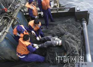 圖:第七十五具空難遇難者遺體被打撈出水 2002年05月11日 22:13 ![]() 北海艦隊(duì)某部救撈船官兵5月11日傍晚時(shí)分又打撈出一具男性遇難者遺體,至此,“五·七”空難遇難者遺體已有七十五具被打撈出水。(中新社記者:王麗南攝)