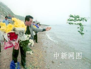 組圖:5月13日大連空難遇難者家屬舉行海祭 2002年05月13日 20:28 ![]() ![]() 圖為張豐儀的母親姜曉云悲痛難抑,暈倒在海邊。 ![]() 張廷家生前是東北電業(yè)管理局第二工程公司的工程師,圖為他的同事在大連海濱撒花祭奠 大連海事大學附屬小學五年級學生張豐儀和爸爸張廷家均在“五·七”空難中不幸罹難。五月十三日,張豐儀的母親姜曉云等親屬到飛機失事海域為他們舉行海祭。中新社圖 王麗南 攝