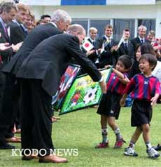 法國等5個世界杯參賽國相繼到達(dá)日本最后備戰(zhàn) 2002年05月21日 15:07 ![]() 丹麥代表隊抵達(dá)和歌山。在和歌山集訓(xùn)地向丹麥選手贈送足球繪畫的幼兒園小朋友(共同社)