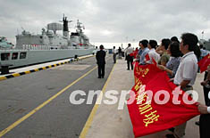 中新社北京五月二十三日電新加坡消息:今日上午十點(diǎn),美麗的“花園島國(guó)”新加坡,披上節(jié)日盛裝,迎來(lái)了中國(guó)人民海軍第一支艦艇編隊(duì)——環(huán)球航行訪(fǎng)問(wèn)艦艇編隊(duì)。 新加坡海軍在樟宜港為中國(guó)艦艇編隊(duì)的到來(lái)舉行了隆重?zé)崃业臍g迎儀式,新加坡海軍艦隊(duì)副司令陳凱賀(TAN KAI HOE)上校和中國(guó)駐新大使張九桓、中資機(jī)構(gòu)、留學(xué)生及新各界人士到碼頭迎接。歡迎人群中拉起了“熱烈歡迎中國(guó)海軍艦艇編隊(duì)訪(fǎng)問(wèn)新加坡”的巨幅標(biāo)語(yǔ),上百面中國(guó)國(guó)旗在歡迎人群中揮舞成一片;中國(guó)使館女青年向總指揮丁一平獻(xiàn)花,陳凱賀上校致歡迎詞,丁一平將軍作了簡(jiǎn)短講話(huà)并與張九恒大使、陳凱賀上校共同接受了記者的采訪(fǎng)。 丁一平將軍在接受記者采訪(fǎng)時(shí)說(shuō),這是中國(guó)海軍艦艇編隊(duì)首次訪(fǎng)問(wèn)新加坡,作為中國(guó)人民和中國(guó)軍隊(duì)的友好使者,我們五百零六名官兵都感到非常高興。這次訪(fǎng)問(wèn),對(duì)加深兩國(guó)人民和軍隊(duì)之間的相互了解、增加信任、擴(kuò)大交流,發(fā)展友誼,進(jìn)一步促進(jìn)兩國(guó)人民、軍隊(duì)、特別是促進(jìn)兩國(guó)海軍關(guān)系的發(fā)展,有著非常重要的意義。訪(fǎng)問(wèn)期間,我們的官兵將親身感受新加坡人民和軍隊(duì)的友好情誼,同樣,新加坡人民和軍隊(duì)也將通過(guò)中國(guó)海軍,更多地了解到中國(guó)人民和中國(guó)軍隊(duì)。 新海軍艦隊(duì)副司令陳凱賀告訴記者,新海軍十分重視中新兩國(guó)海軍關(guān)系的發(fā)展,新海軍先后于九八、九九年分別派艦對(duì)上海和青島進(jìn)行了友好訪(fǎng)問(wèn)。這次中國(guó)海軍艦艇編隊(duì)來(lái)新加坡訪(fǎng)問(wèn),是我們期待已久的事,我們?yōu)橹袊?guó)海軍的來(lái)訪(fǎng),精心安排了多方面的活動(dòng)。 據(jù)記者了解,訪(fǎng)問(wèn)樟宜港,是中國(guó)海軍艦艇編隊(duì)此次環(huán)球航行訪(fǎng)問(wèn)的第一站。該港位于新加坡北部,是新海軍最大的基地和海軍司令部所在地,港內(nèi)可?堪ê娇漳概炘趦(nèi)的多種艦船。中國(guó)艦艇編隊(duì)將在此訪(fǎng)問(wèn)三天,訪(fǎng)問(wèn)其間,相繼到港的還有泰國(guó)、德國(guó)軍艦。 歡迎儀式結(jié)束后,編隊(duì)總指揮丁一平在張九恒大使陪同下前往新國(guó)防部拜會(huì)了新海軍總長(zhǎng)(司令)呂德耀少將。參加歡迎儀式的中國(guó)駐新使館人員、華人華僑及留學(xué)生代表百余人登艦參觀(guān),并與官兵們進(jìn)行了親切交談。 當(dāng)日下午,出訪(fǎng)官兵參觀(guān)了新海軍基地設(shè)施和戰(zhàn)術(shù)訓(xùn)練中心、軍艦等。晚上,新海軍為中國(guó)艦艇編隊(duì)官兵舉行了歡迎宴會(huì),新海軍參謀長(zhǎng)戴榮利準(zhǔn)將等高級(jí)官員出席。(完)