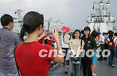 圖文:中國(guó)環(huán)球航行訪(fǎng)問(wèn)艦艇編隊(duì)首訪(fǎng)新加坡 2002年05月23日 19:08 ![]() 二十三日上午,興致勃勃的中國(guó)留學(xué)生在新加坡樟宜港登上中國(guó)海軍首次環(huán)球航行訪(fǎng)問(wèn)艦艇編隊(duì)的“青島號(hào)”艦艇,參觀(guān)和留影。中新社圖 躍勝岐 攝