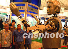圖:國產音樂迎賓機器人亮相 2002年05月26日 11:02 ![]() 一位國產音樂迎賓機器人,在五月北京國際科技產業(yè)博覽會上亮相,它能指揮許多中外名曲向來賓致意。賈國榮 攝