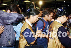 中新社記者現(xiàn)場(chǎng)報(bào)道:悲痛籠罩臺(tái)北機(jī)場(chǎng)(多圖) 2002年05月26日 11:14 ![]() 遇難乘客中5名香港旅客的19名家屬,26日0時(shí)30分抵達(dá)臺(tái)北桃園機(jī)場(chǎng)。中新社記者 任晨鳴 攝