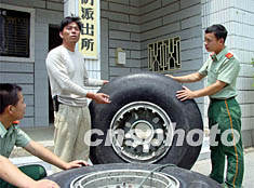 圖:福建漁民撈獲四只華航失事客機(jī)輪胎 2002年05月30日 19:09 ![]() 三十日下午二時(shí)許,“閩獅漁二三八五號(hào)”漁船打撈起一只華航失事客機(jī)輪胎,至此,福建石獅漁民已撈起失事客機(jī)的四只輪胎及多件飛機(jī)殘骸。現(xiàn)三只輪胎存放于石獅祥芝邊防派出所,隨時(shí)準(zhǔn)備移交臺(tái)灣方面。徐承彬 攝