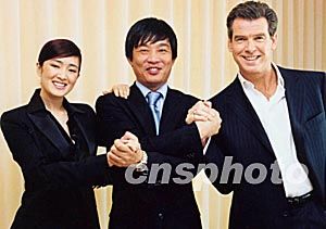 組圖:皮爾斯·布魯斯南與鞏俐聯(lián)手拍攝廣告片 2002年05月31日 11:15 ![]() 日前,中國著名西服品牌"夏蒙"公司,特邀美國好萊塢著名影星皮爾斯·布魯斯南(右)與中國著名影星鞏俐(左)聯(lián)手在倫敦為該品牌拍攝廣告片。圖為"夏蒙"服飾公司董事長陳孝祥先生(中) 與明星們一起祝廣告拍攝成功。東方 攝