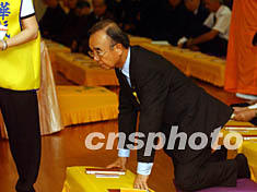 組圖:臺(tái)北舉行追思"華航"遇難乘客法會(huì) 2002年05月31日 19:59 ![]() 五月三十一日,“華航” 董事長李云寧參加臺(tái)北佛教界追思遇難者法會(huì)時(shí)下跪,向遇難者致哀。中新社記者 任晨鳴 攝